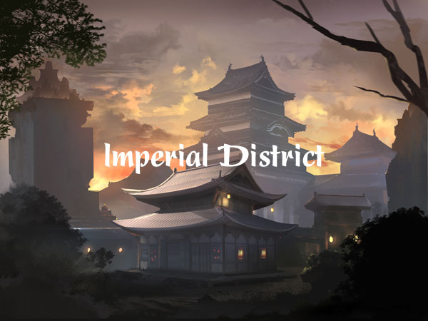 ImperialDistrict1Reese and myself, both nearly voiceless, played in levels just above whispers. Playing my Mantis Clan deck from Saturday, I elicited approval from Reese for the visible support of my old faction, the Naga.