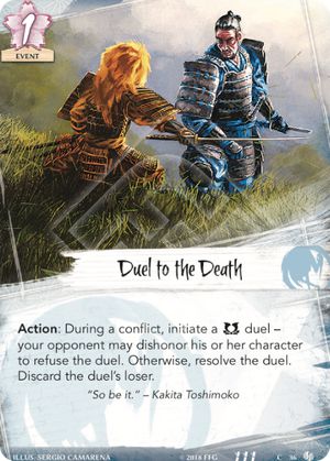 Ultimately, however, the Duels printed in the Core Set were, for the most part, not the sort a person would throw without guaranteeing victory, save for Kakita Kaezin. Indeed, to date Kaezin and Honest Challenger remain the only two Duels wherein victory in the Duel may not be better than loss.