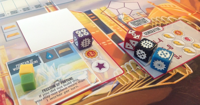 Second: the dice placement mechanic itself. Euphoria’s dice represent your unnamed workers at any given time. Say hello drones!